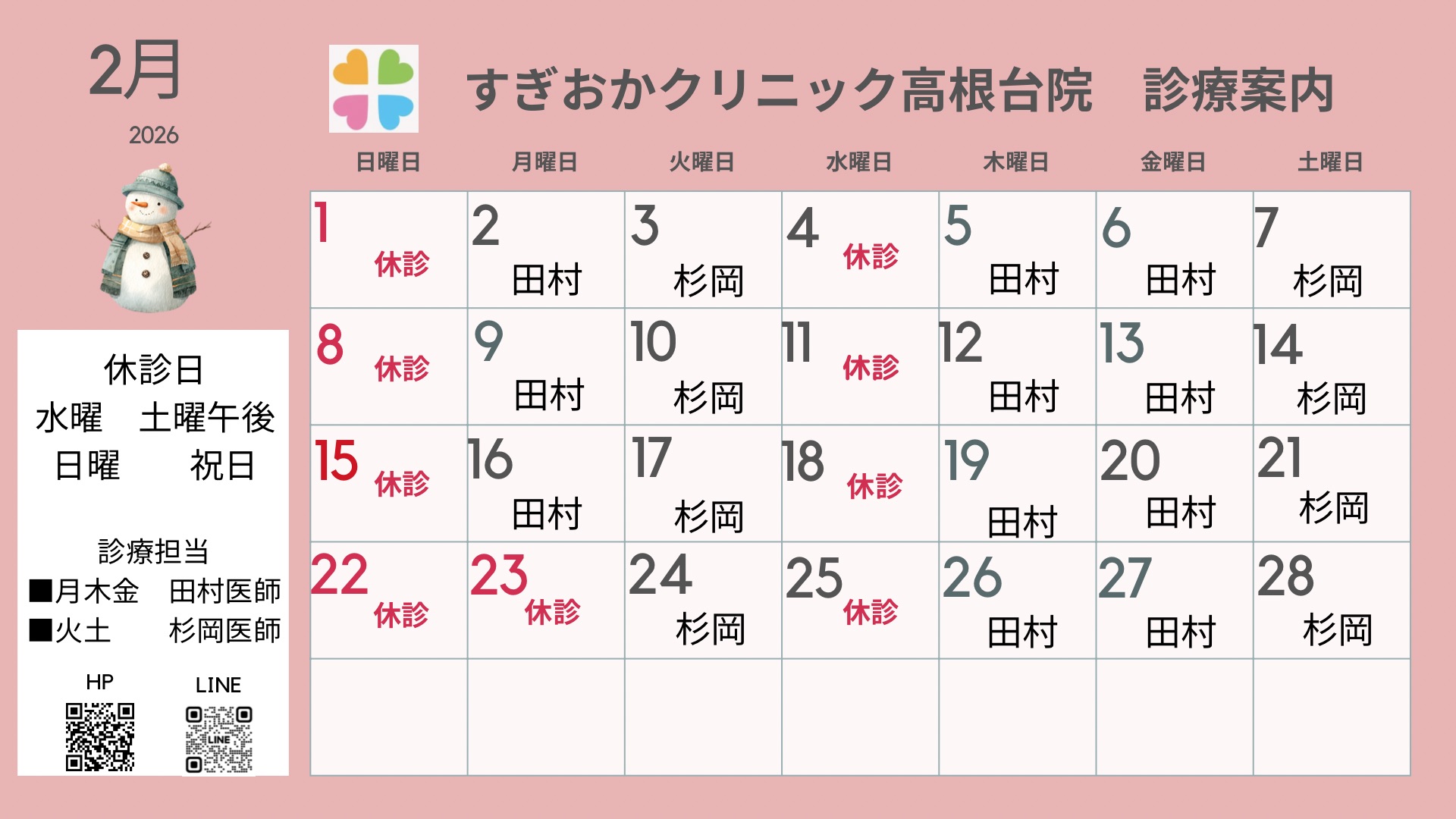 2026年2月 | すぎおかクリニック高根台院|船橋市高根台の循環器内科・心臓内科・糖尿病内科・内科