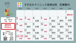 10月の臨時休診のお知らせ | すぎおかクリニック高根台院|船橋市高根台の循環器内科・心臓内科・糖尿病内科・内科